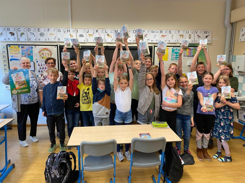 Schließlich nahm Frau Sopart, auch in allen Schulbuchfragen Kooperationspartnerin der Schule, das Motto der Aktion wörtlich und schenkte den Viertklässlern ein Exemplar von „Iwa, Samo und der geheime Hexensee“.